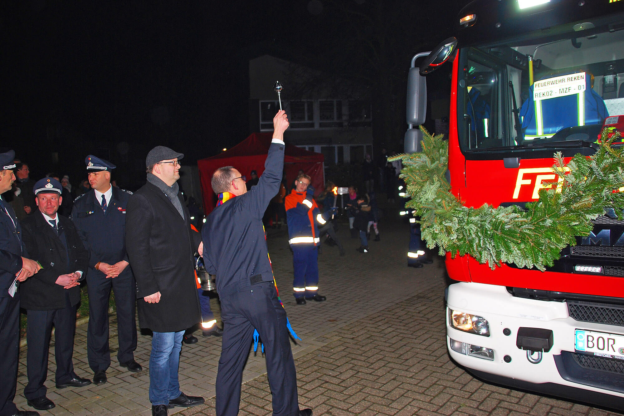 Auf die Fürsprache des Heiligen Florian wurde das neue MZF (Mehrzweck-Fahrzeug) der Feuerwehr Reken gesegnet.