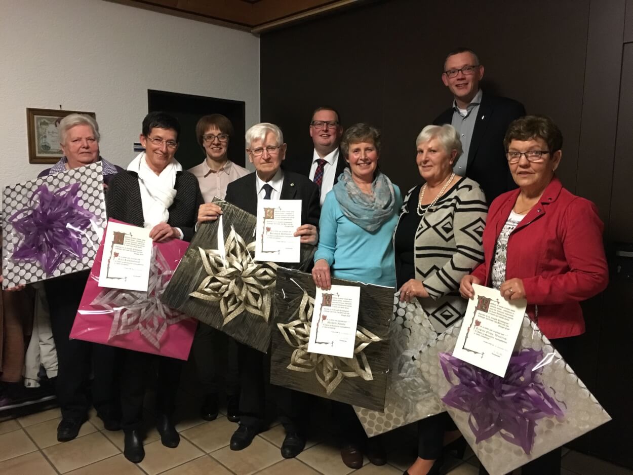 Der Kirchenchor St. Heinrich hat am Samstag, 19. November das Cäcilienfest begangen. Nach einem festlichen Gottesdienst wurden 6 Mitglieder für Ihre 40-jährige Sangeslust im Chor geehrt. Ihre Jubiläen feierten (vorne von links nach rechts): Regina Grote-Westrick, Rita Lütkebohmert, Bernhard Hoffmann, Marlies Gelking, Mechthild Inholte und Elisabeth Südholt. Hinten auf dem Foto sind zu sehen (von links): 1. Vositzende Veronika Niewerth, Chorleiter Udo Nobis und der Präses des Kirchenchores Pastor Thomas Hatwig. Der Abend klang bei einem leckeren Essen aus.
