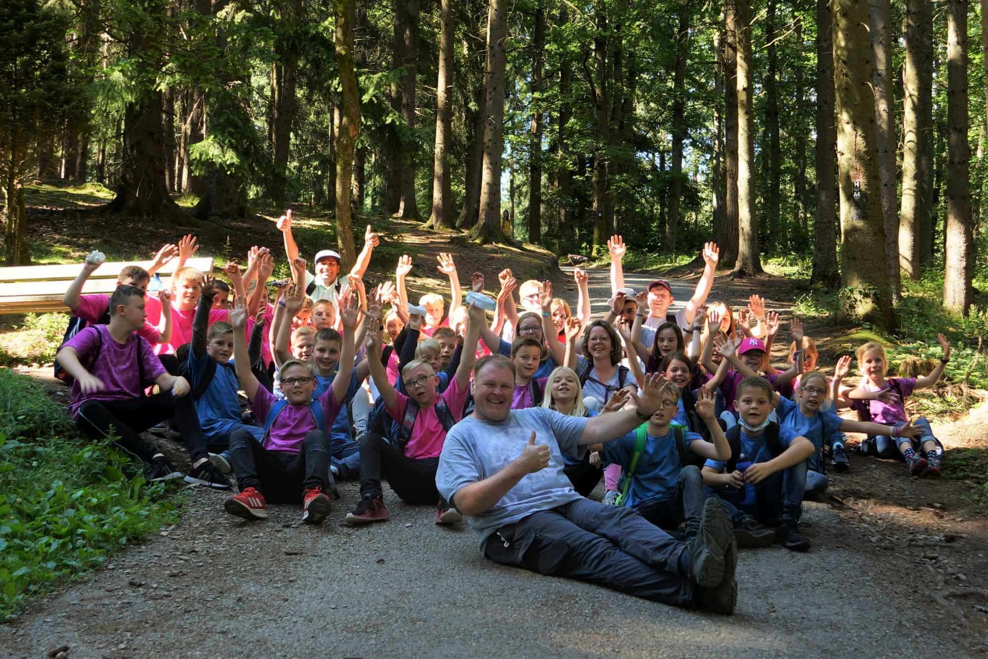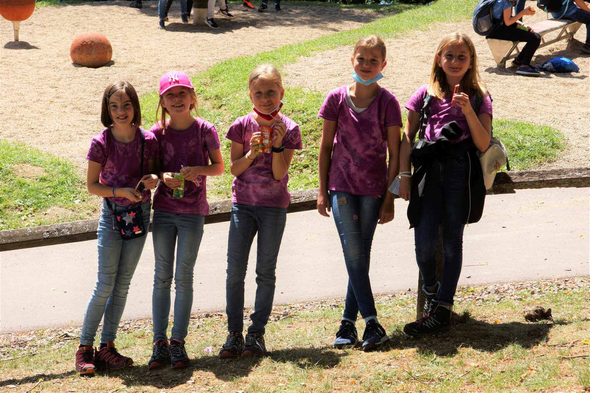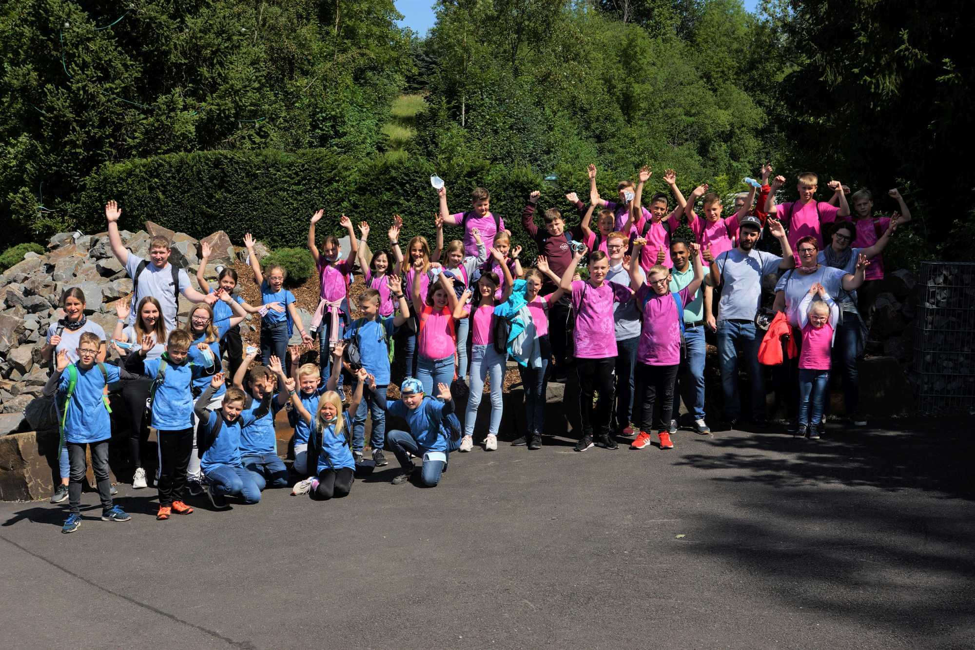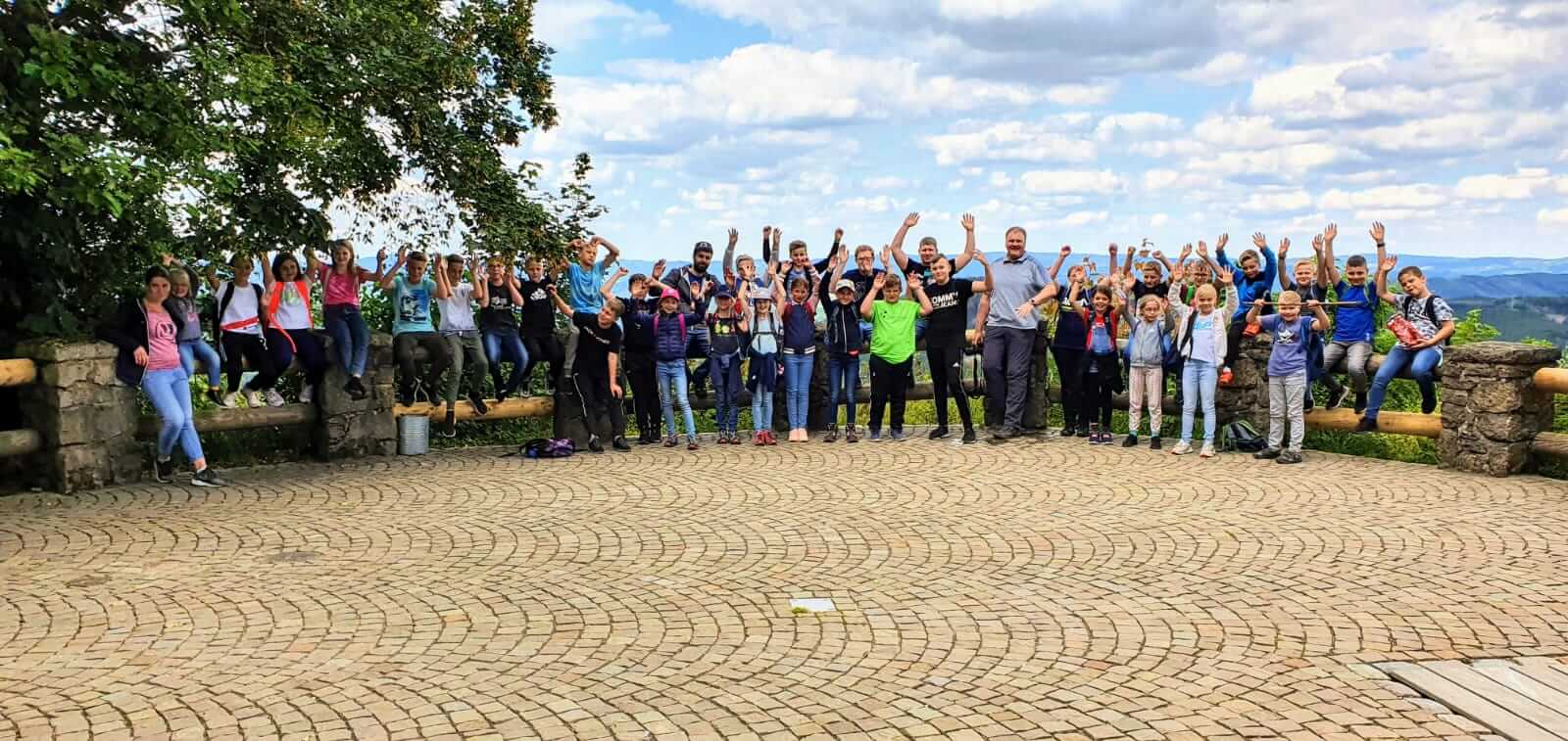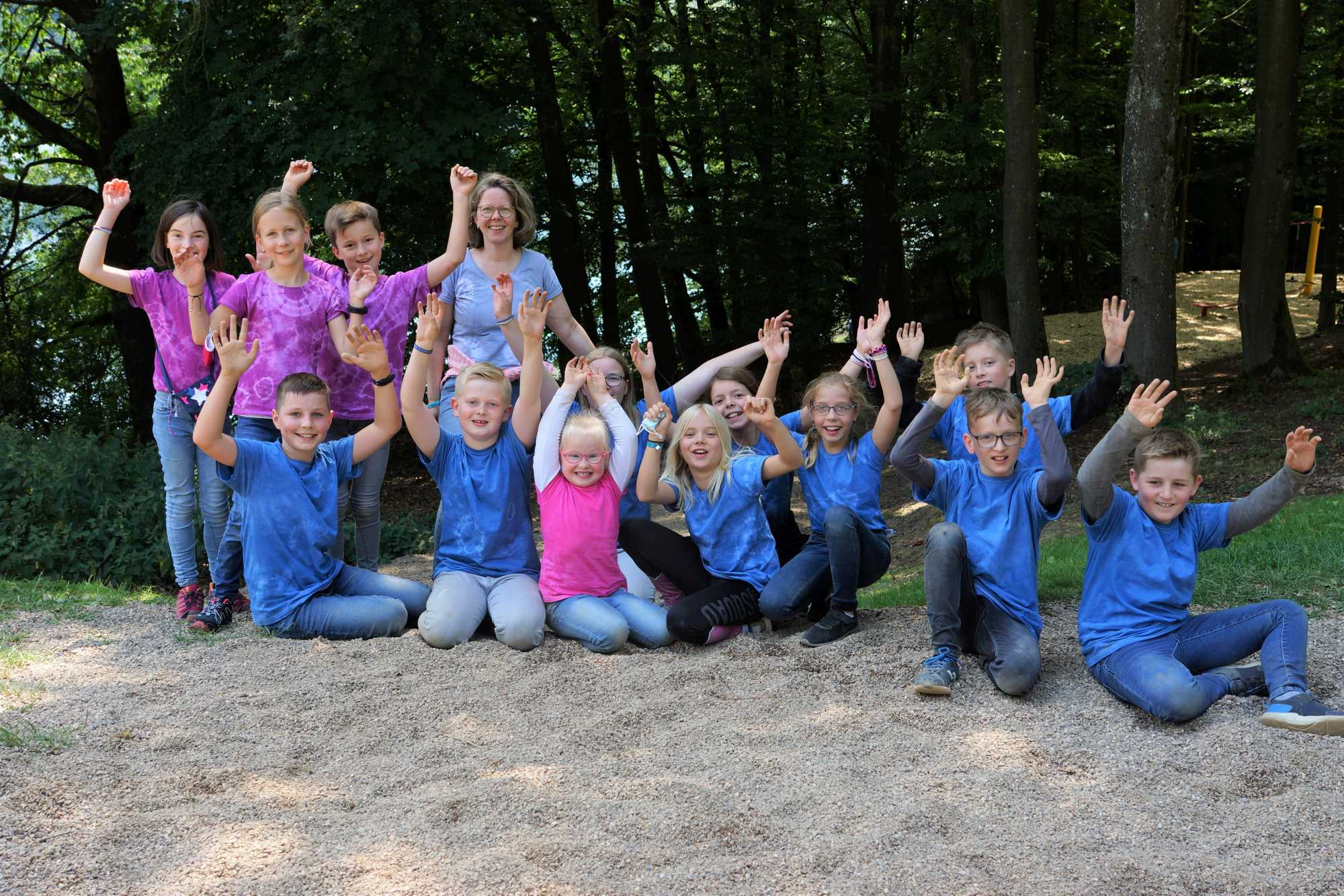 Wandertag zum Aussichtspunkt Hohe Bracht. Gutes Wetter im Sauerland und die Batik-Shirts sind auch schon fertig für morgen. Nach dem Abendessen gibt es noch die Preisverleihung für die Zimmerplakate. Alle Gruppen haben sich Mühe gegeben bei der Gestaltung. Bei der Prämierung werden wir verkünden, dass wir morgen einen Tagesausflug machen. Alle sind gesund und munter und haben richtig Spaß, dass sie hier im Ferienlager sein können.