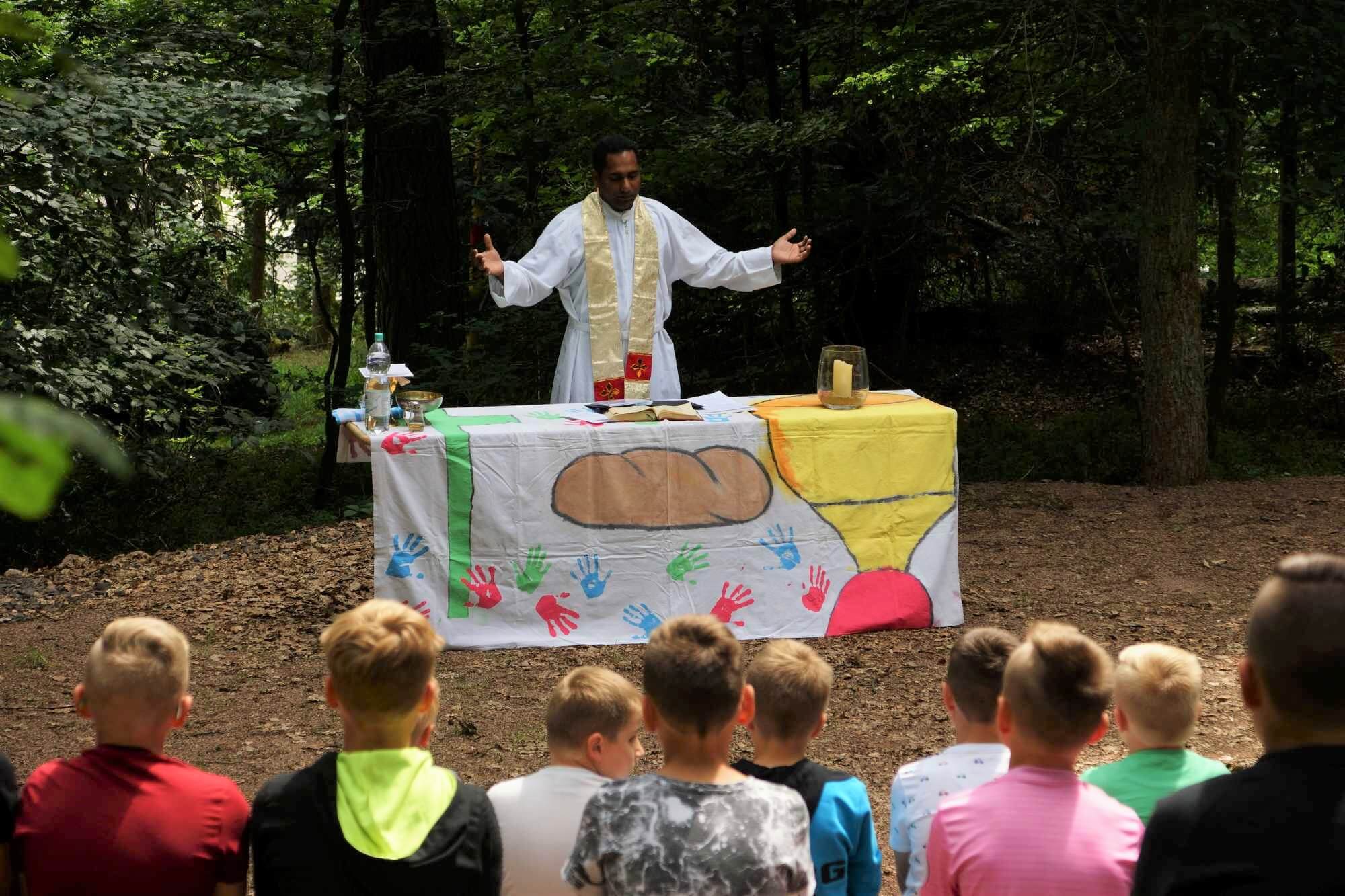 Heute haben wir unsere Luftballons in den Himmel geschickt. Wir hoffen, dass sie weite Strecken zurücklegen und nach Reken zurück geschickt werden. Mit Pater Cyril haben wir den Lagergottesdienst gefeiert. Gegen Abend fing es an zu regnen. Unser Bergfest ist nun zu Ende und wir haben Nachtruhe.