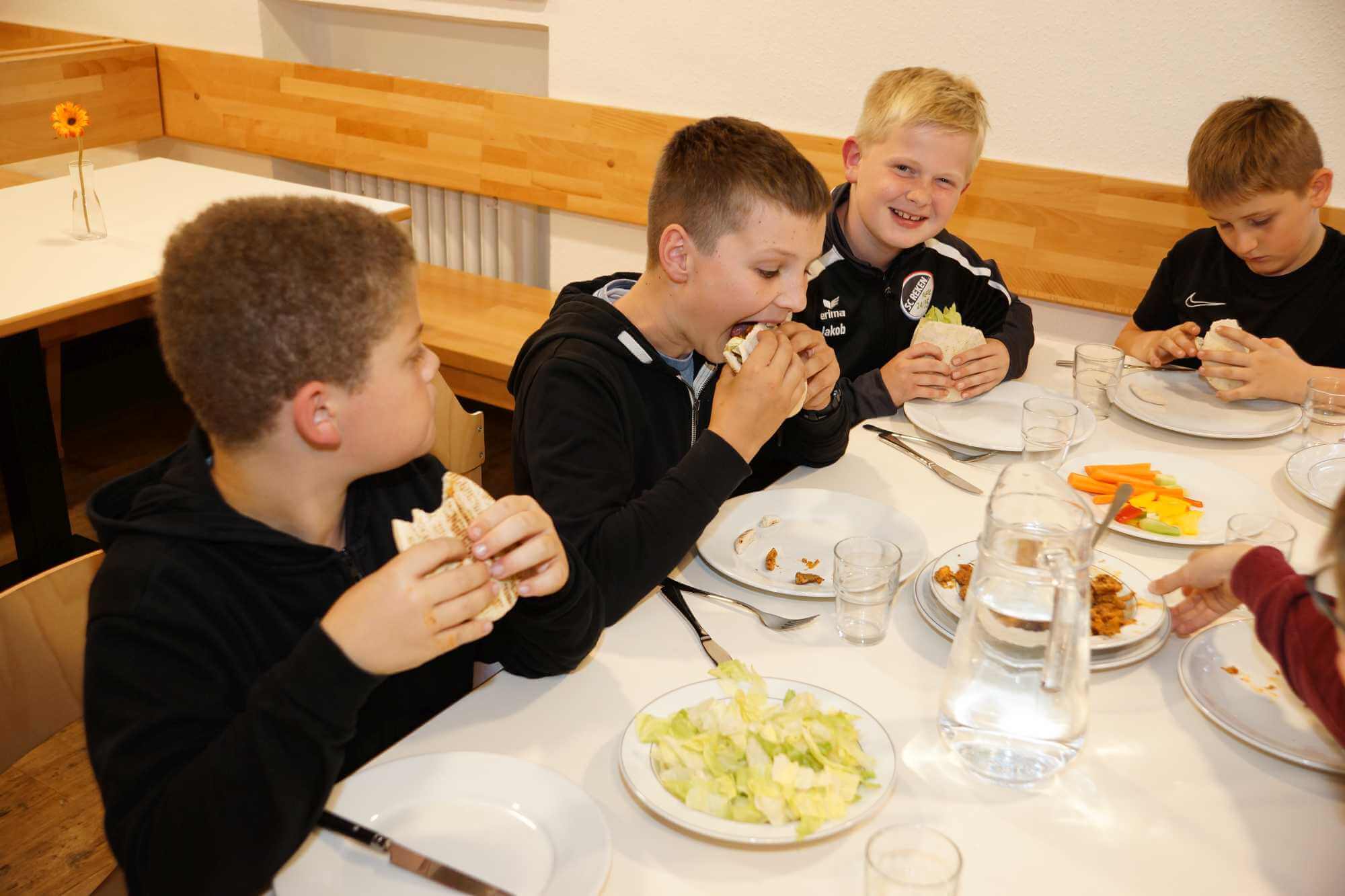 Vormittags haben wir den Regentag in unserer Sporthalle mit einem Fußballturnier verbracht. Gut, dass wir so viele Möglichkeiten haben. Nachmittags waren wir zum Shopping in Lennestadt und den Abend haben Werner und Marcel mit der 1, 2 oder 3-Show gestaltet. Wir werden übrigens von Frauke, Kerstin und Eva-Maria top verpflegt!