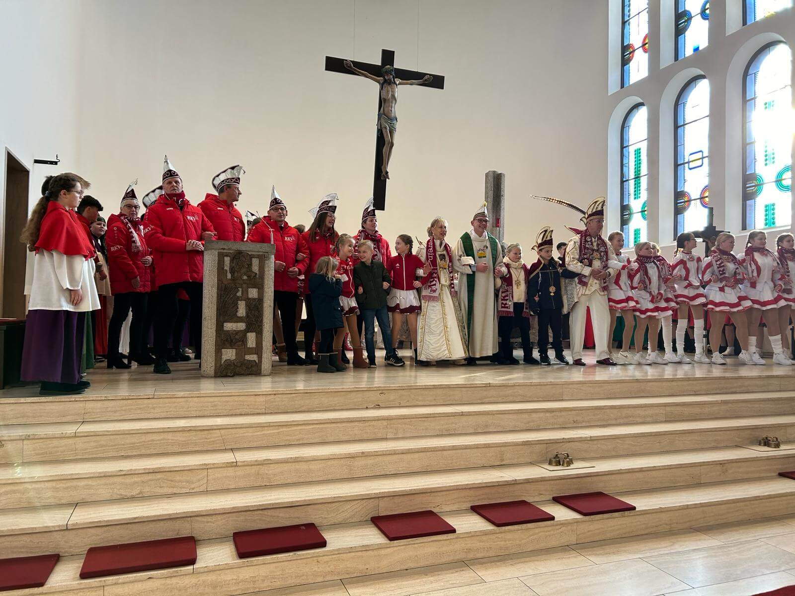 Heute war wieder Karneval in St. Heinrich, farbenfroh mit Messdienern in bunten Gewändern, mit dem RKV, mit dem Prinzenpaar Jürgen I. und Angelika I. und dem Kinderprinzenpaar Laurenz und Hannah. Sie zogen mit ihrem Hofstaat in die Kirche ein.
