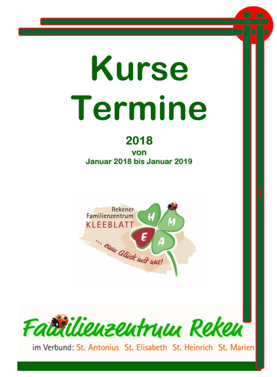 Das Familienzentrum Kleeblatt (alle katholischen Kitas der Pfarrgemeinde St. Heinrich) haben wieder ein abwechslungsreiches Programmheft / Kursheft (Download PDF-Datei) für das Jahr 2018 für Eltern und Kinder zusammengestellt.