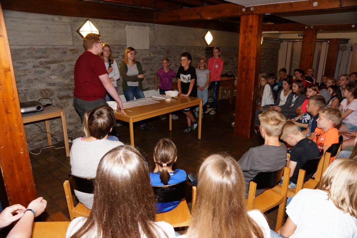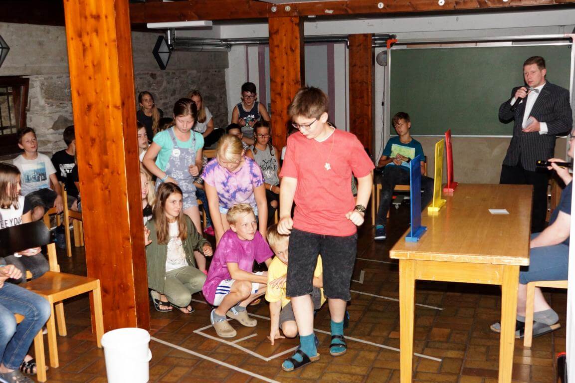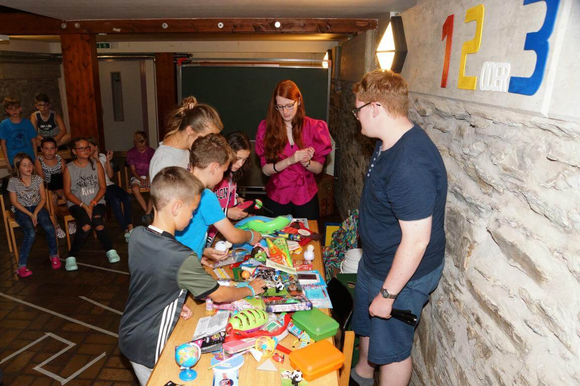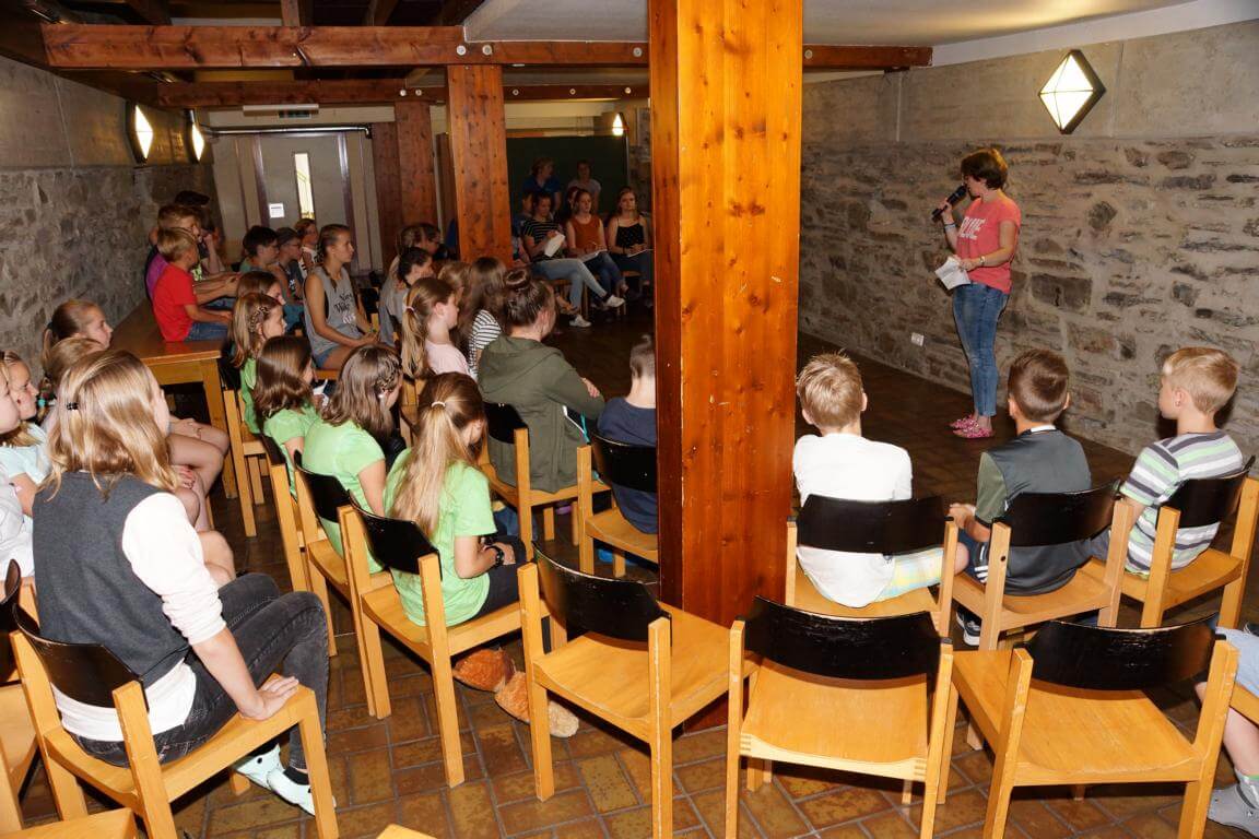42 Kinder und ihre 13 Betreuerinnen und Betreuer verbringen vom 7.-14. August 2017 eine tolle Ferienwoche im Jugendhaus des Klosters. Das Betreuerteam hat ein abwechslungsreiches Programm mit vielen Spielen, Wettkämpfen und Ausflügen geplant. Besonders interessant wird es, wenn die Kinder bei „Schlag den Betreuer“ in vielen Disziplinen gegen ihre Betreuer antreten.