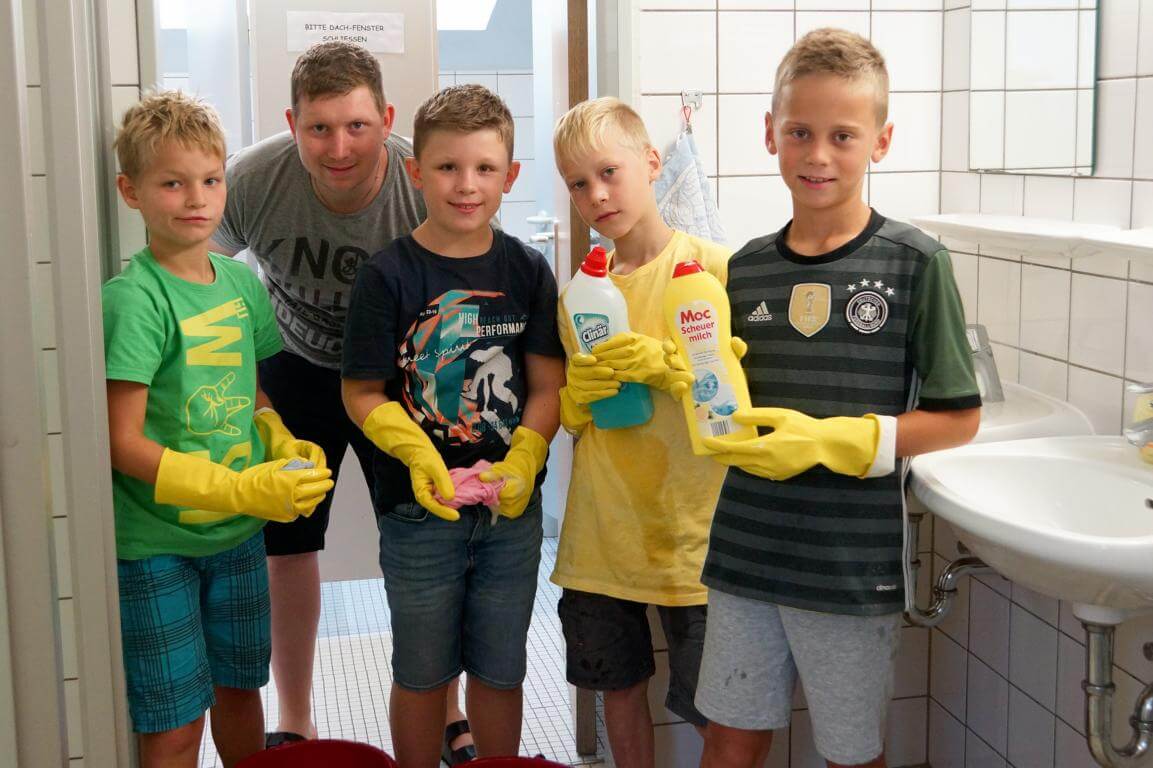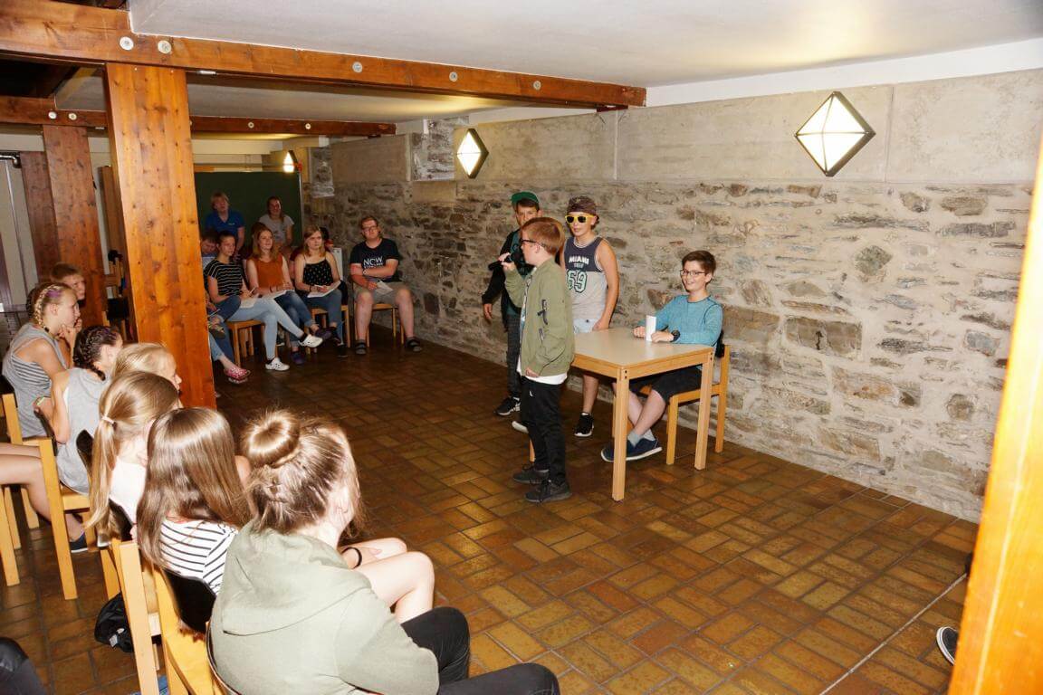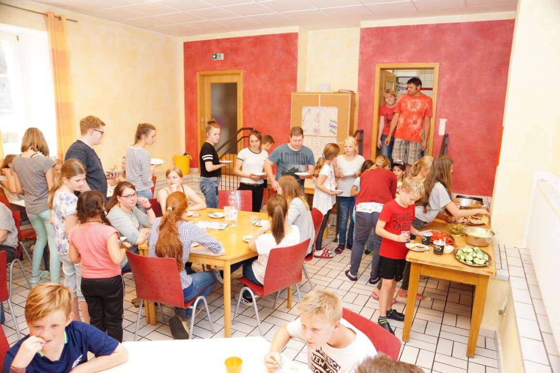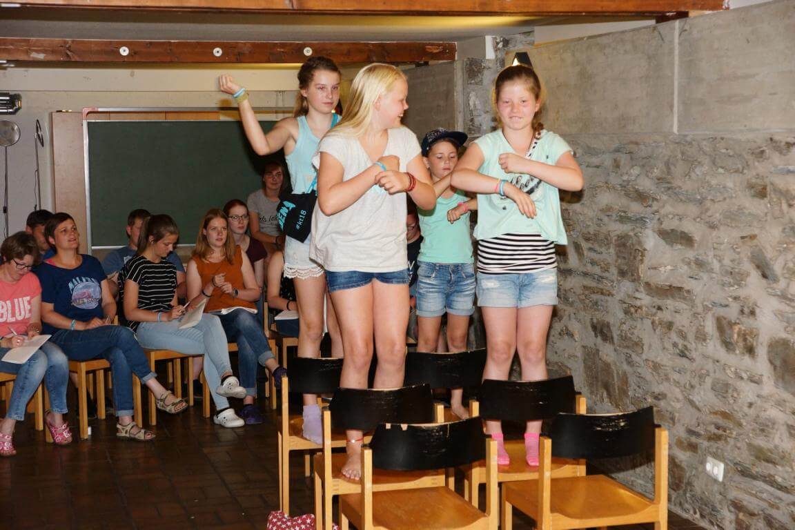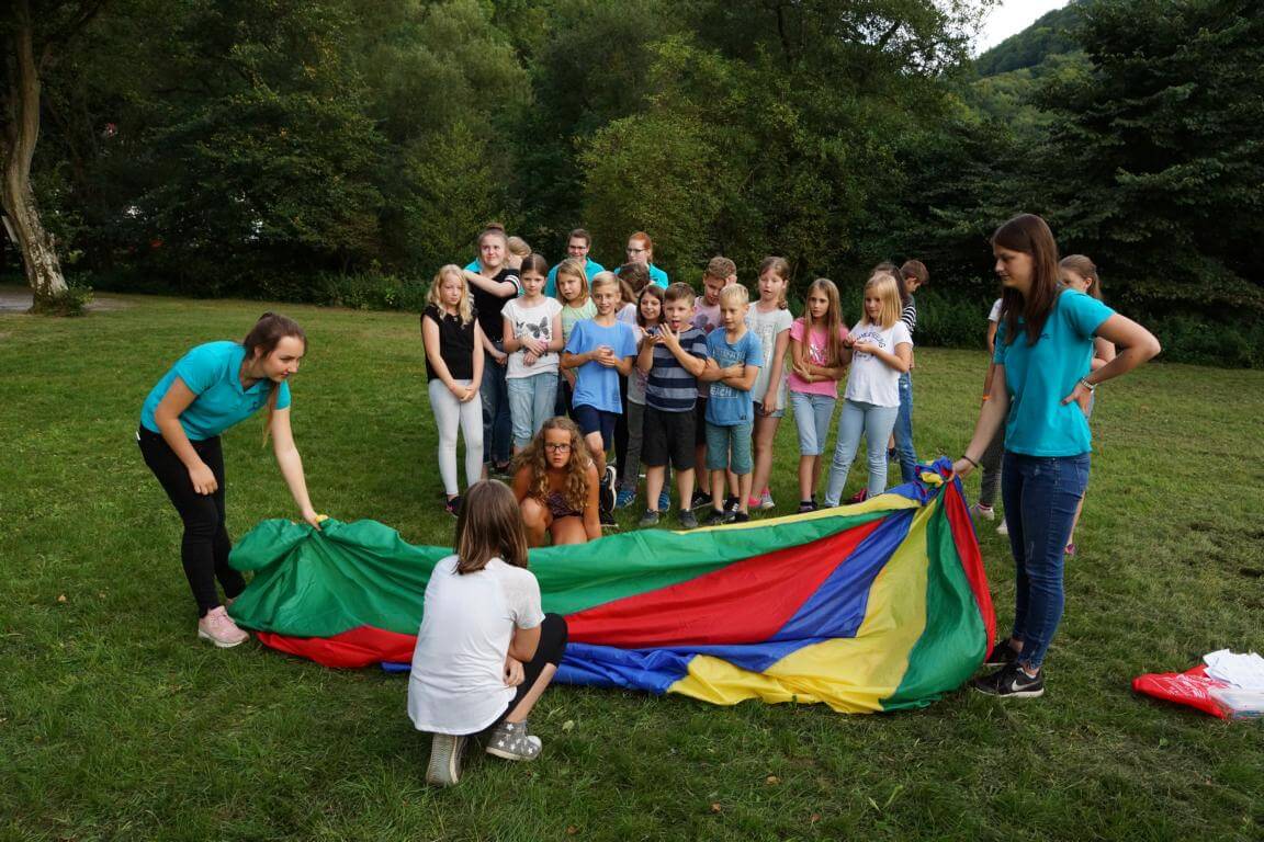 42 Kinder und ihre 13 Betreuerinnen und Betreuer verbringen vom 7.-14. August 2017 eine tolle Ferienwoche im Jugendhaus des Klosters. Das Betreuerteam hat ein abwechslungsreiches Programm mit vielen Spielen, Wettkämpfen und Ausflügen geplant. Besonders interessant wird es, wenn die Kinder bei „Schlag den Betreuer“ in vielen Disziplinen gegen ihre Betreuer antreten.